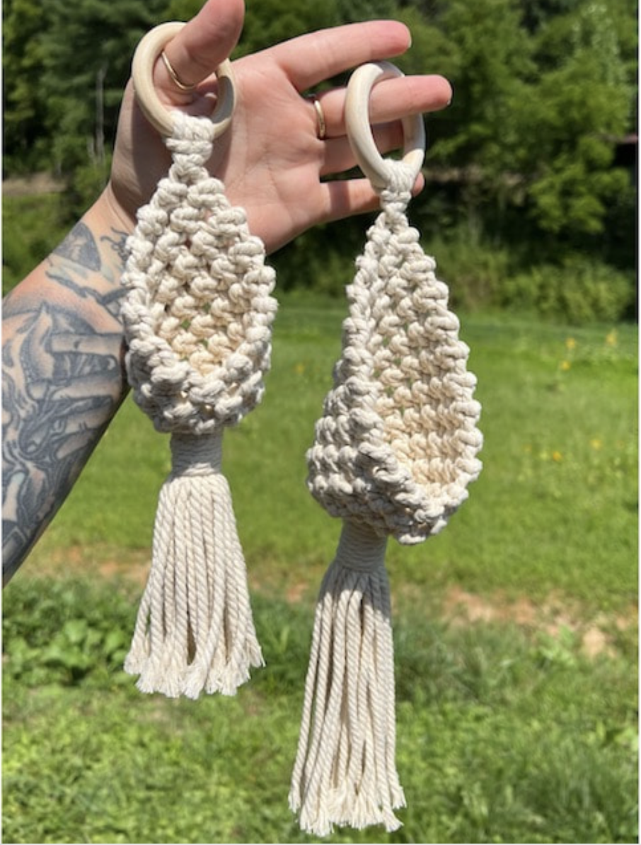 Learn the basics of macramé with me at Ginger’s Revenge in the River Arts District of Asheville. In this hands-on workshop you will learn a few fundamental knots and techniques to create your very own hanging nest! You will have the option of 3 different colors. No prior experience is necessary: you’ll do great! I will provide all the knotting assistance and support you need!