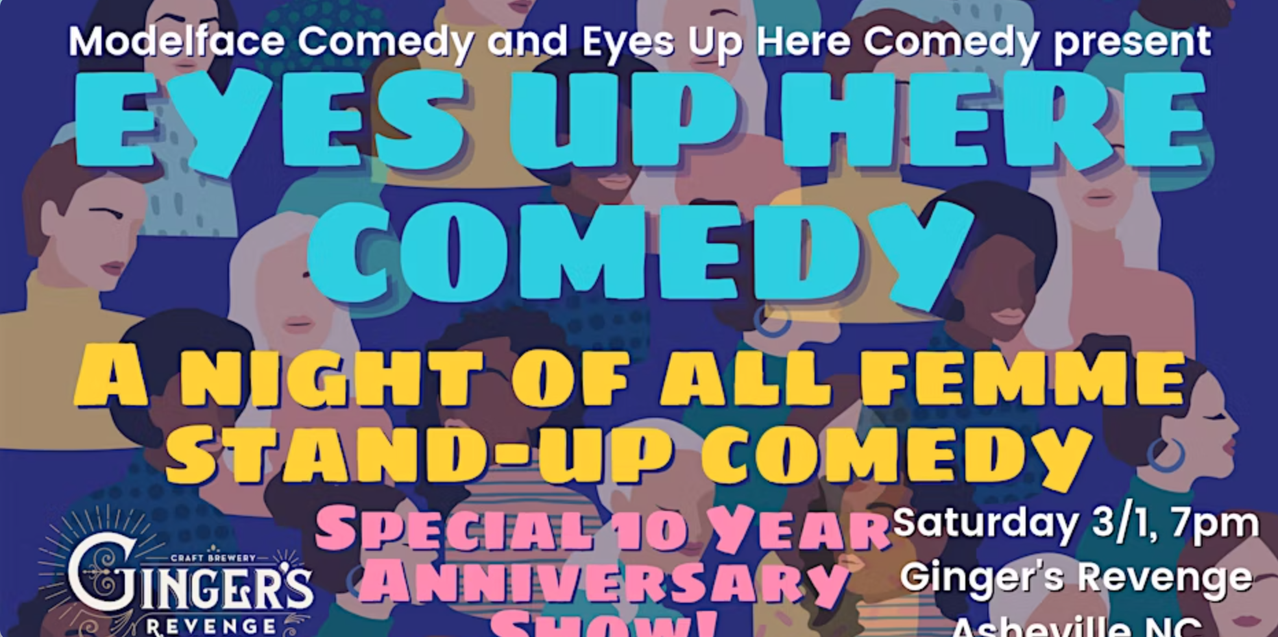 Eyes Up Here Comedy is a night featuring all femme comedians and this month we have a special show featuring comedians from Asheville and around the South East.